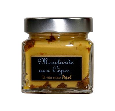 Ingrédients : graine de moutarde, eau, vinaigre, sel, sucre, conservateur, sulfite d'acide de sodium, cèpes 0,1%, huile d'olive.